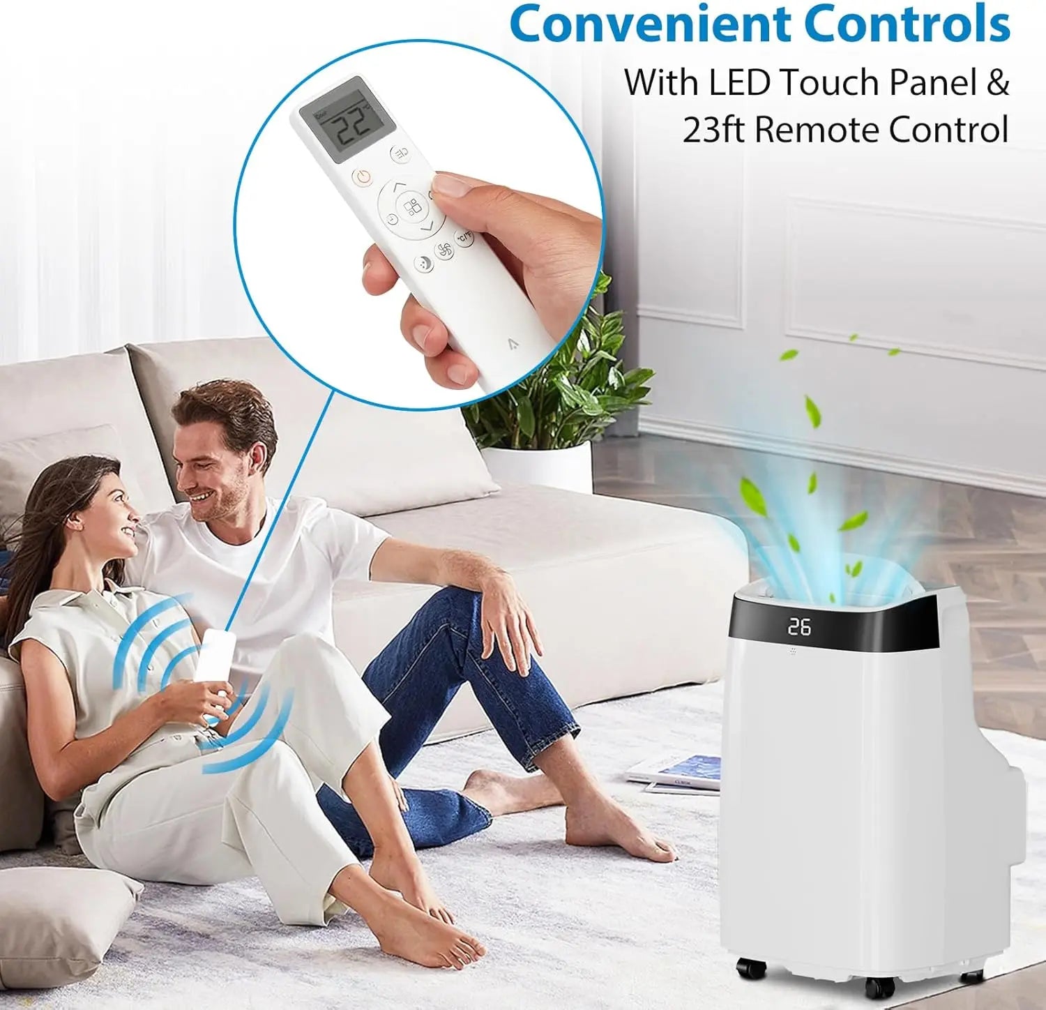 Beat the heat anywhere with the Acekool 10000 BTU portable air conditioner—the compact, rolling cooling solution you control from your couch to your desk.