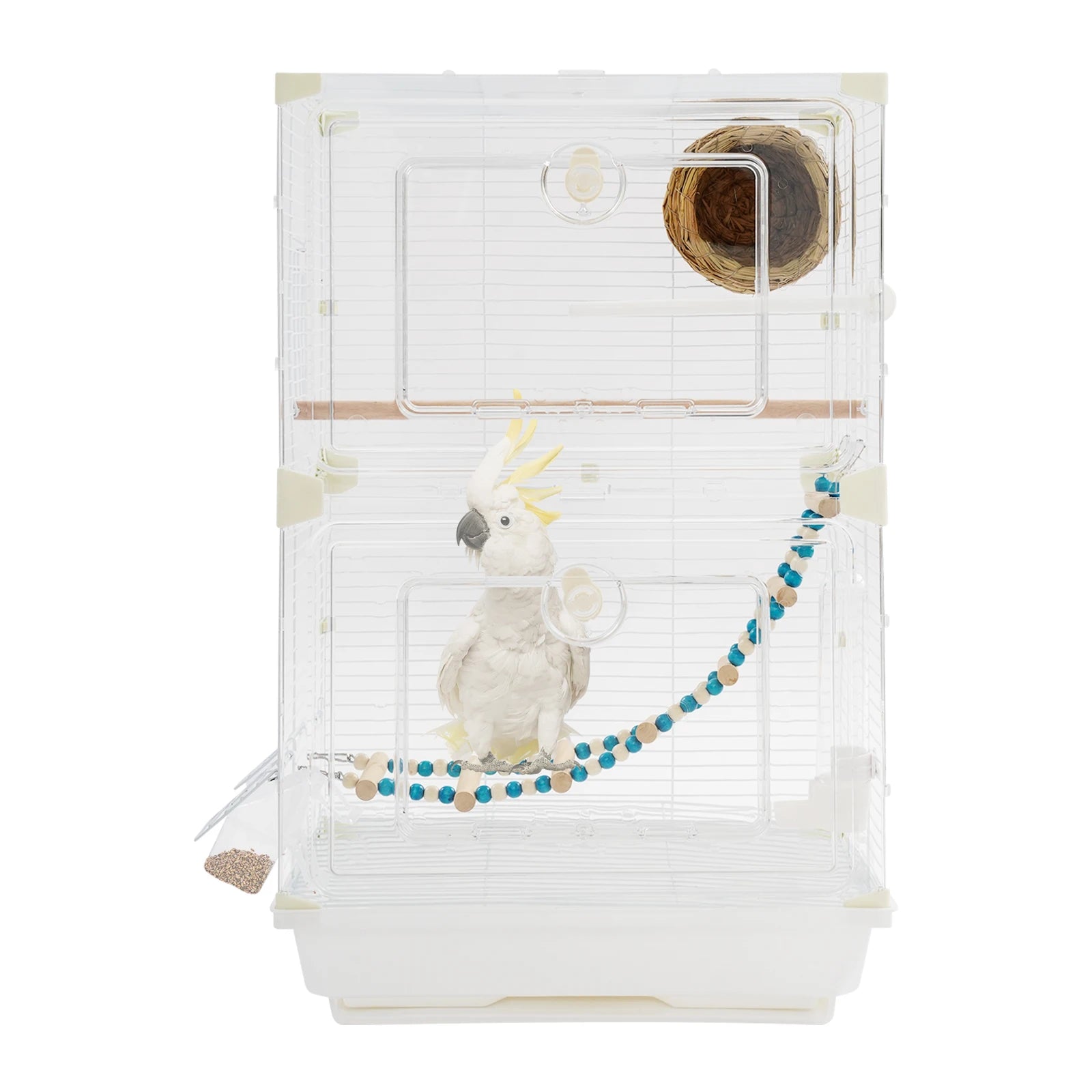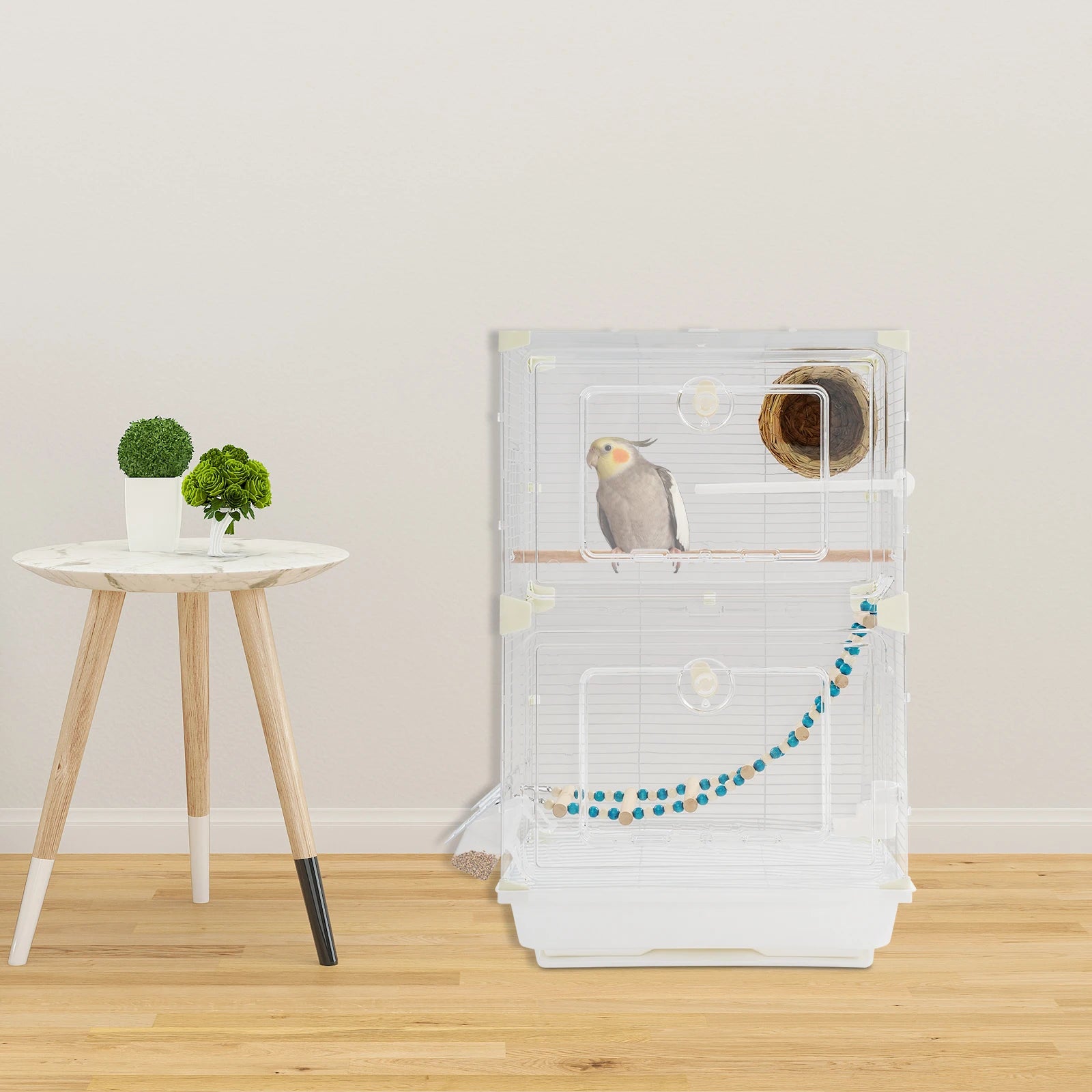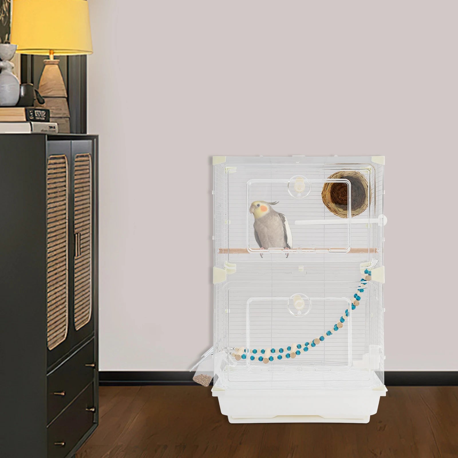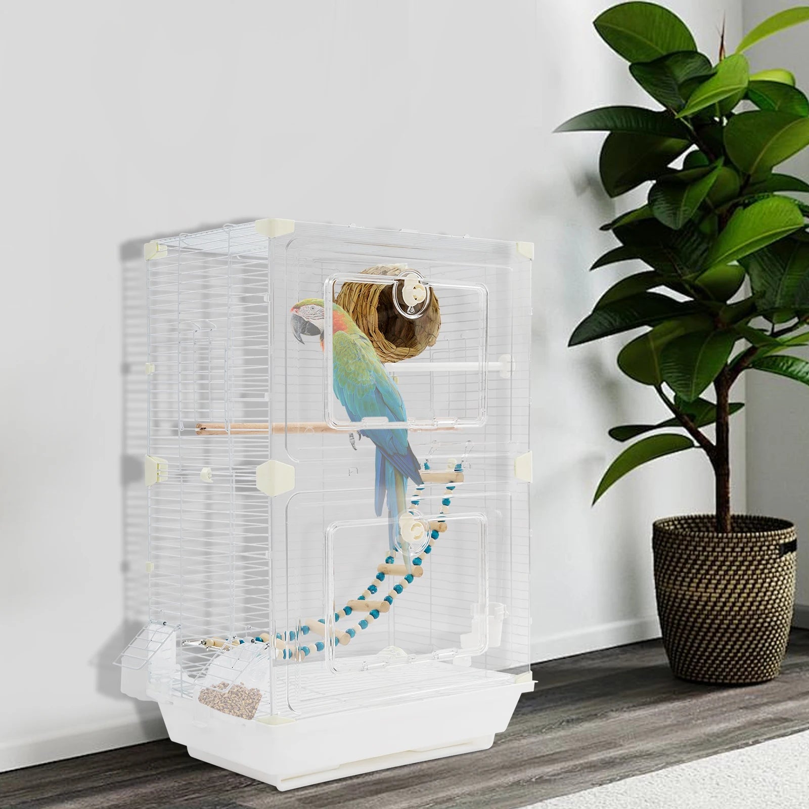 - Spacious interior (15.74 x 11.02 x 24.8 inches) lets your birds jump, fly, and explore freely; includes a nest, ladder, and wooden pole to support natural behaviors; the clear hollow design provides unobstructed viewing and ventilation.