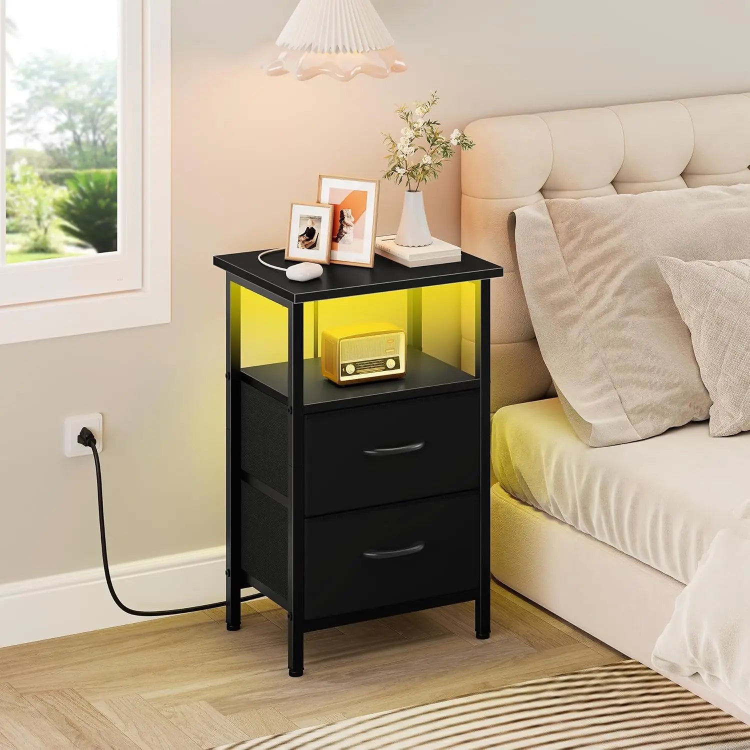 Illuminate your bedroom with a sleek two-piece nightstand set that blends ambient RGB lighting, rugged practicality, and updated storage.