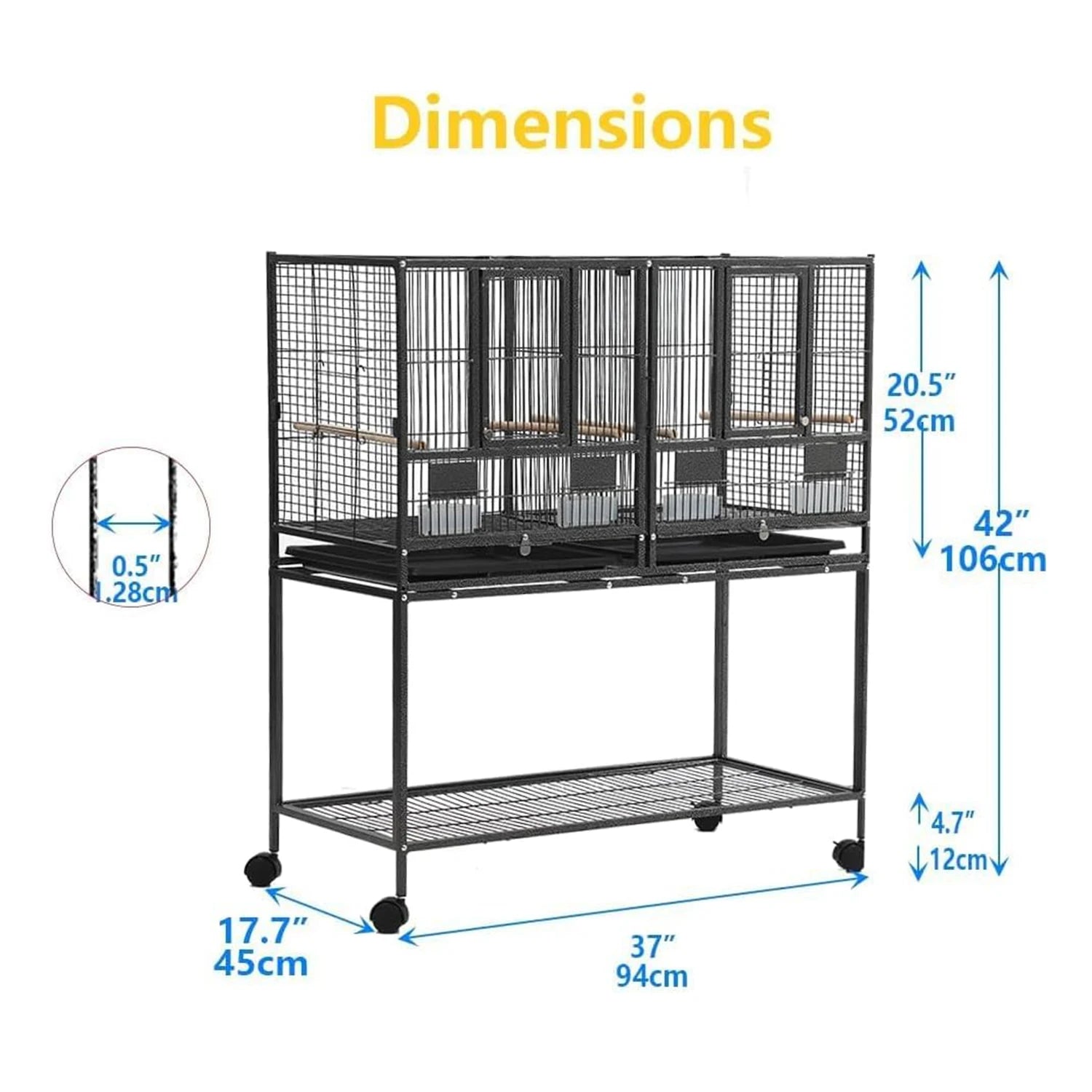 - Four smooth-rolling casters (two with brakes) enable effortless mobility; simply roll the cage to sunlit spots or social areas and lock the wheels for stable positioning.