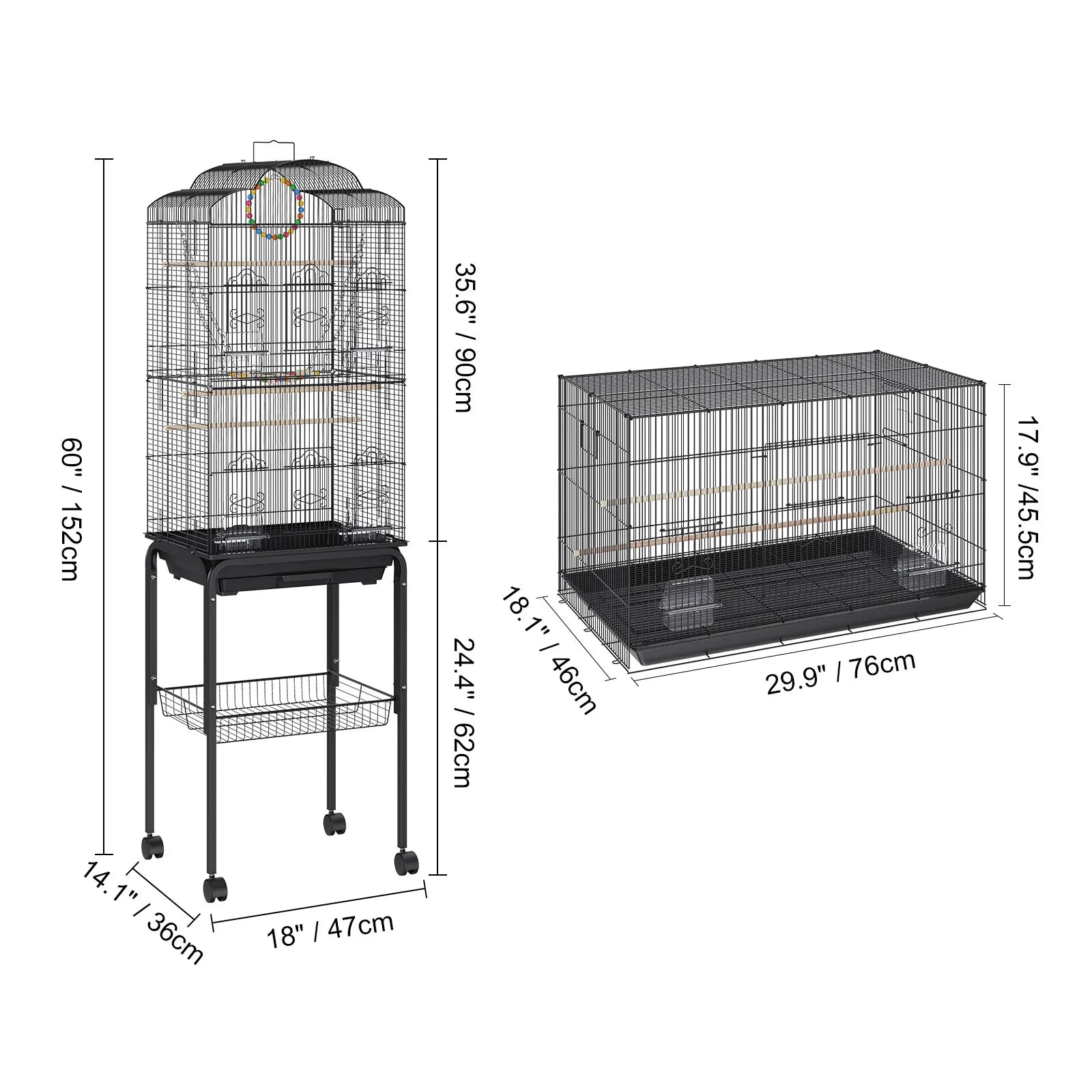 - You enjoy generous interior space (60 in tall) with a 0.4 in grid, allowing parrots and cockatiels to spread wings, perch comfortably, and move freely without crowding.