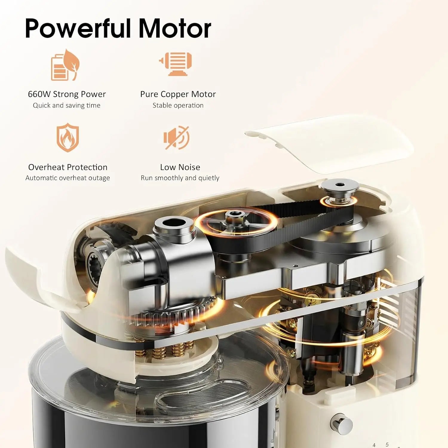- 660W motor with 8 speeds delivers consistent results from light batters to dense doughs, giving you precise control and smooth, streak-free mixing.