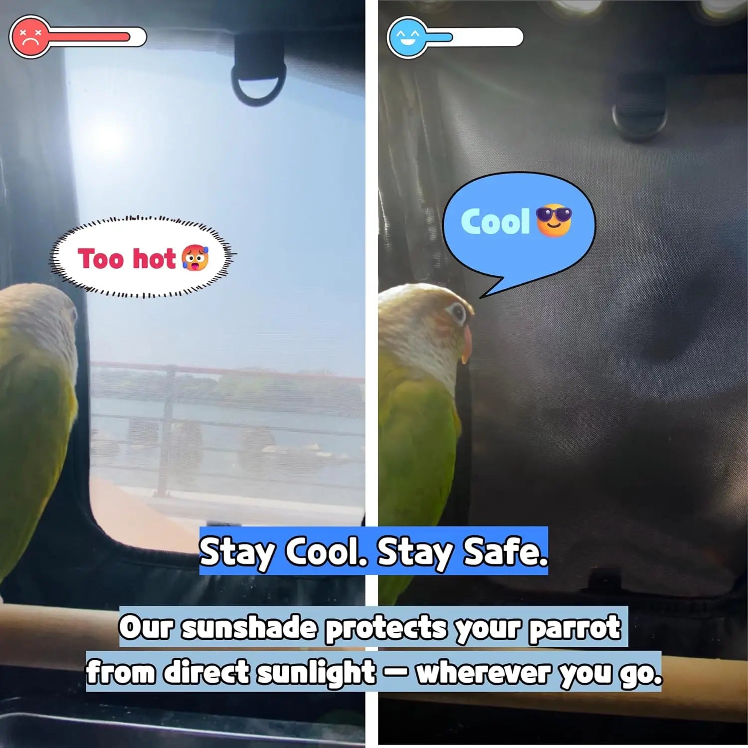 - Optimal ventilation and sun control: three‑sided mesh with strategic ventilation holes ensures continuous airflow, while white mesh reflects sunlight and adjustable flaps shield from direct sun to protect sensitive airways.