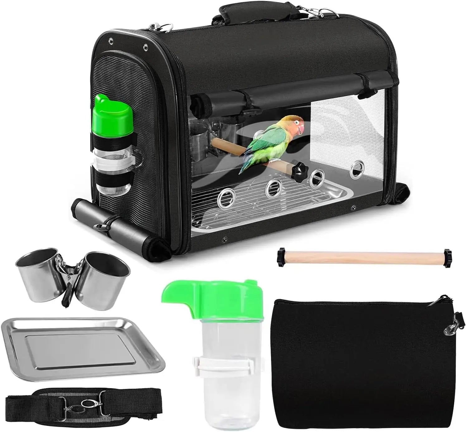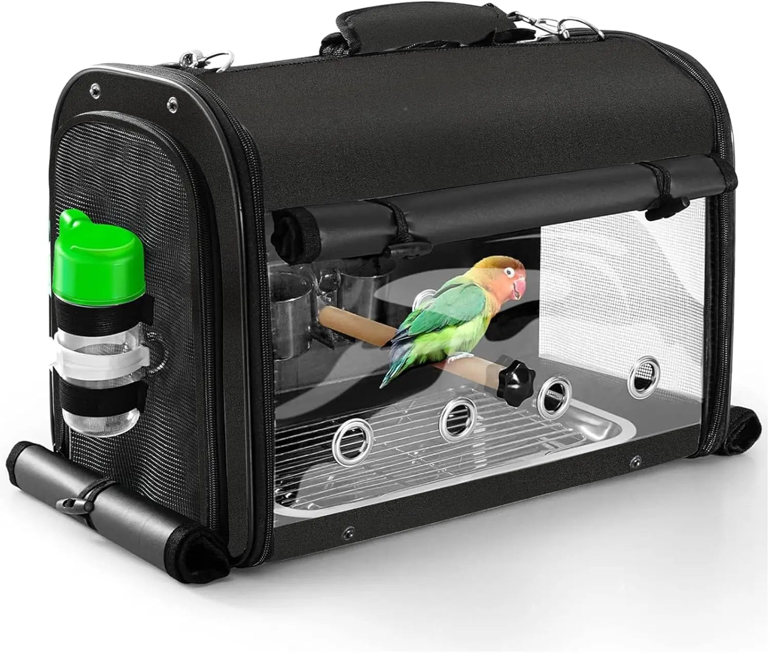 - Feeding & perching setup includes removable bowls, a water bottle, and two perches so your bird stays fed, hydrated, and relaxed during journeys.