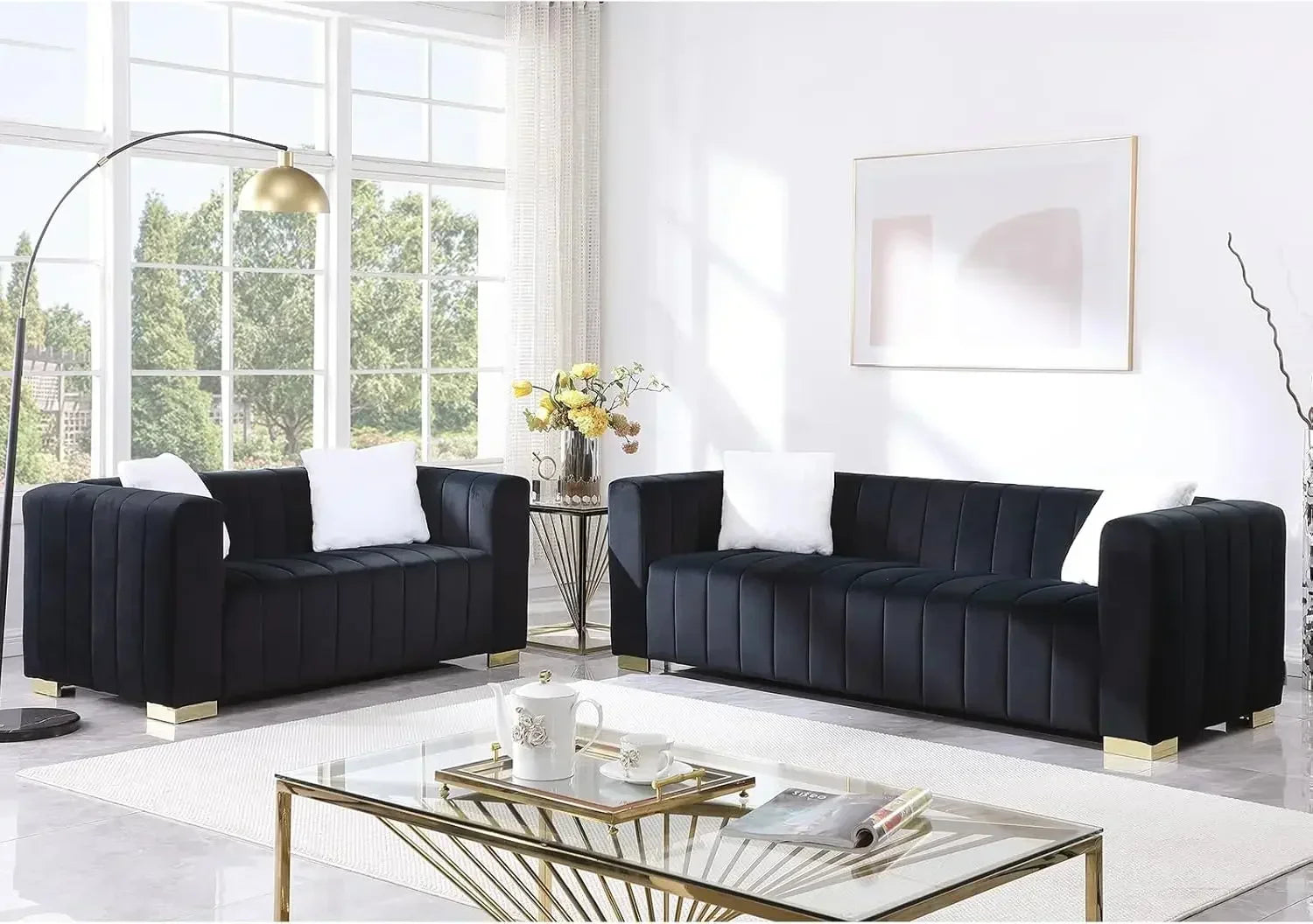 Modern Velvet Channel Tufted Two-Piece Sofa Set with Loveseat