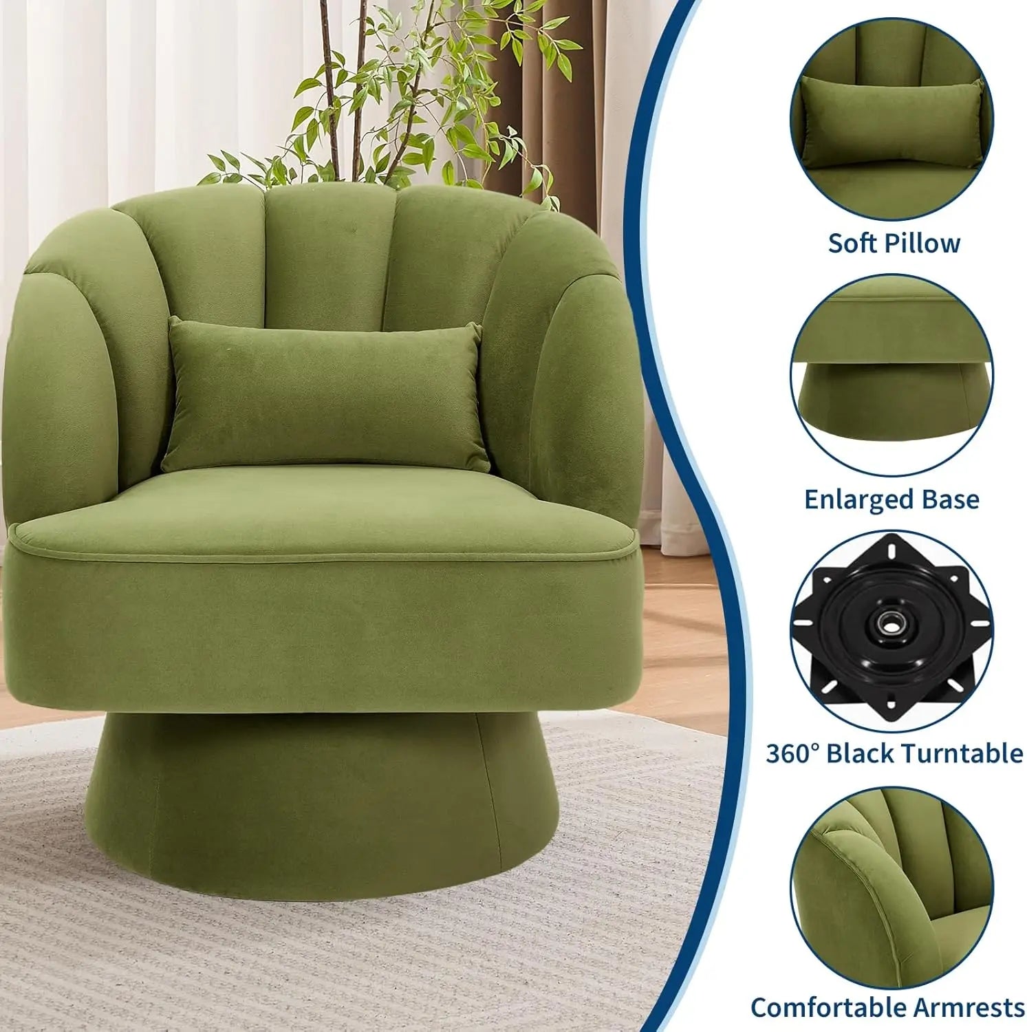 - 360° swivel with a sturdy, whisper-quiet base: reinforced wood frame and industrial-grade metal swivel ensure smooth, stable rotation for your conversations or reading.