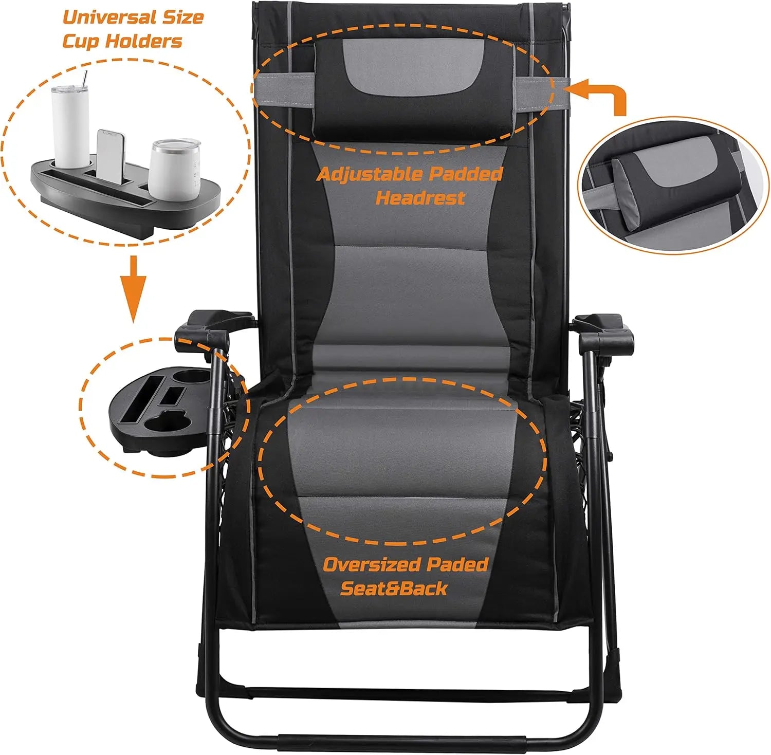 - Zero gravity recline places your body in a balanced, weightless posture for effortless reading, napping, or sunbathing.